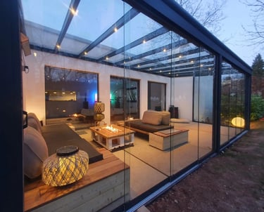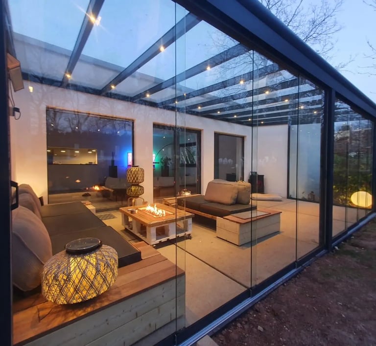 Met glazen schuifwanden kunt u nog langer van uw tuin en van het buitenleven genieten, zelfs bij slechte weersomstandigheden en zeker wanneer deze aan huis wordt geplaatst. Hierdoor creëert u ook extra woonruimte, wat een toevoeging is voor uw woning. Een ander voordeel is dat dankzij de glazen schuifwanden er minder warmte van binnen naar buiten ontsnapt en de warmte langer blijft hangen. Hierdoor kunt u al in het vroege voorjaar of juist in het late najaar genieten van uw tuinkamer glas. Wordt het te warm? Dan schuift u de glaswanden eenvoudig open. En door het vele glas in zowel de glazen schuifwanden als in het dak wordt er extra veel licht gecreëerd en blijft de natuurlijke lichtinval binnenshuis behouden. Hierdoor vormt een volledig Glazen Tuinkamer een ideaal verlengstuk van uw huis.